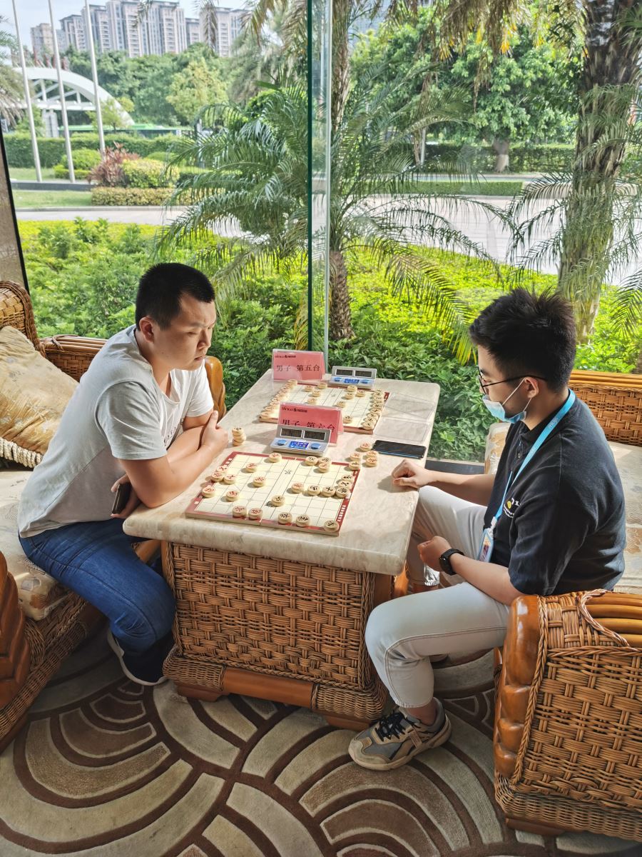 下午13:30,入圍決賽的棋手嚴格遵循防疫相關規定,測量體溫,保持安全距離,抽簽確定對陣順序,經電腦抽簽對陣后,第三屆象棋賽正式開賽,他們凝神靜氣、布陣點兵,展示出了較高的棋藝水平和心理素質。本次比賽采用的是積分制,是目前全國賽中最常使用的賽制。
