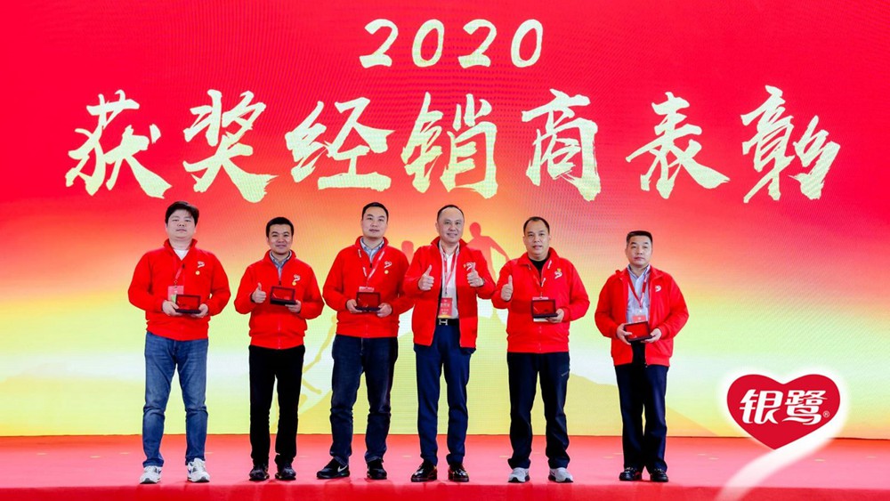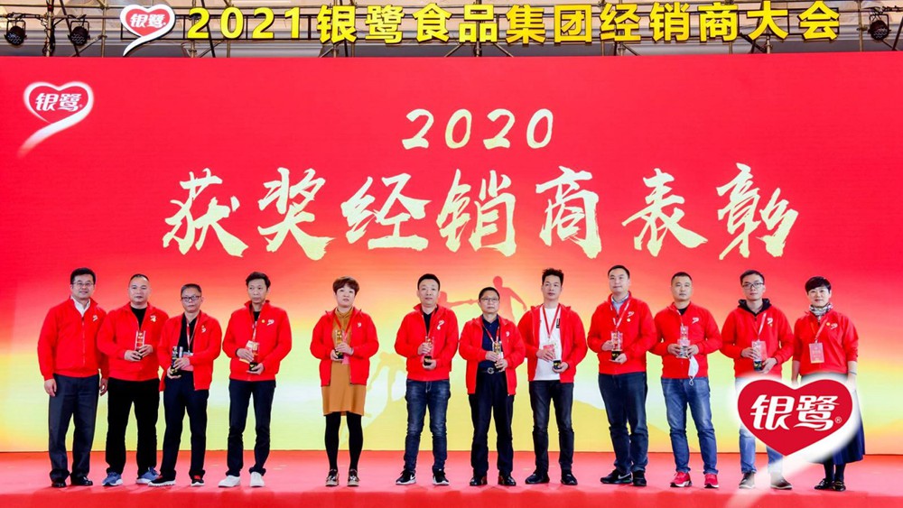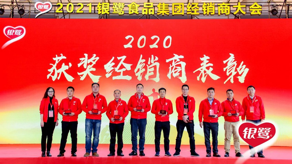 會上,公司領導為優秀的經銷商代表一一頒獎,并合影留念。銀鷺食品集團2020年經銷商大會在熱烈的氛圍中圓滿落幕。